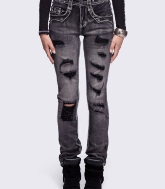 Retro Denim Full Rhinestone Design Baggy Jeans